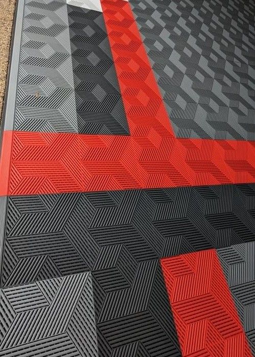 Readygo oferuje usługi dostosowywania produktów do naszych płytek podłogowych, model 3D-cubic.O grubości 00,7 cala i odporne na promieniowanie UV, te płytki są idealne do garaży, warsztatów i powierzchni komercyjnych.